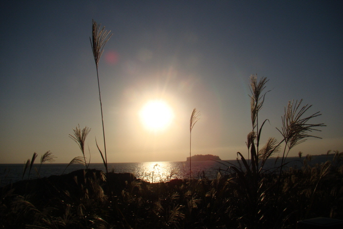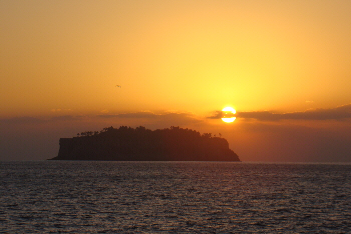 이곳에서 이렇게 범섬위로 떨어지는 일몰을